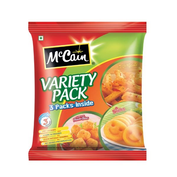 Mccain Variety Smiles, Chilly, Garlic, Bytes and Masala Fries 3 Packs Inside ( 550 g)