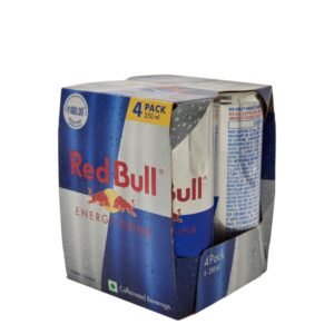 Red Bull Energy Drink – 4 × 250 ml: A 4-pack of the classic Red Bull formula — carbonated drink with caffeine (80 mg per 250 ml), taurine, B-group vitamins, sugar and alpine water — designed to “vitalize body and mind.”